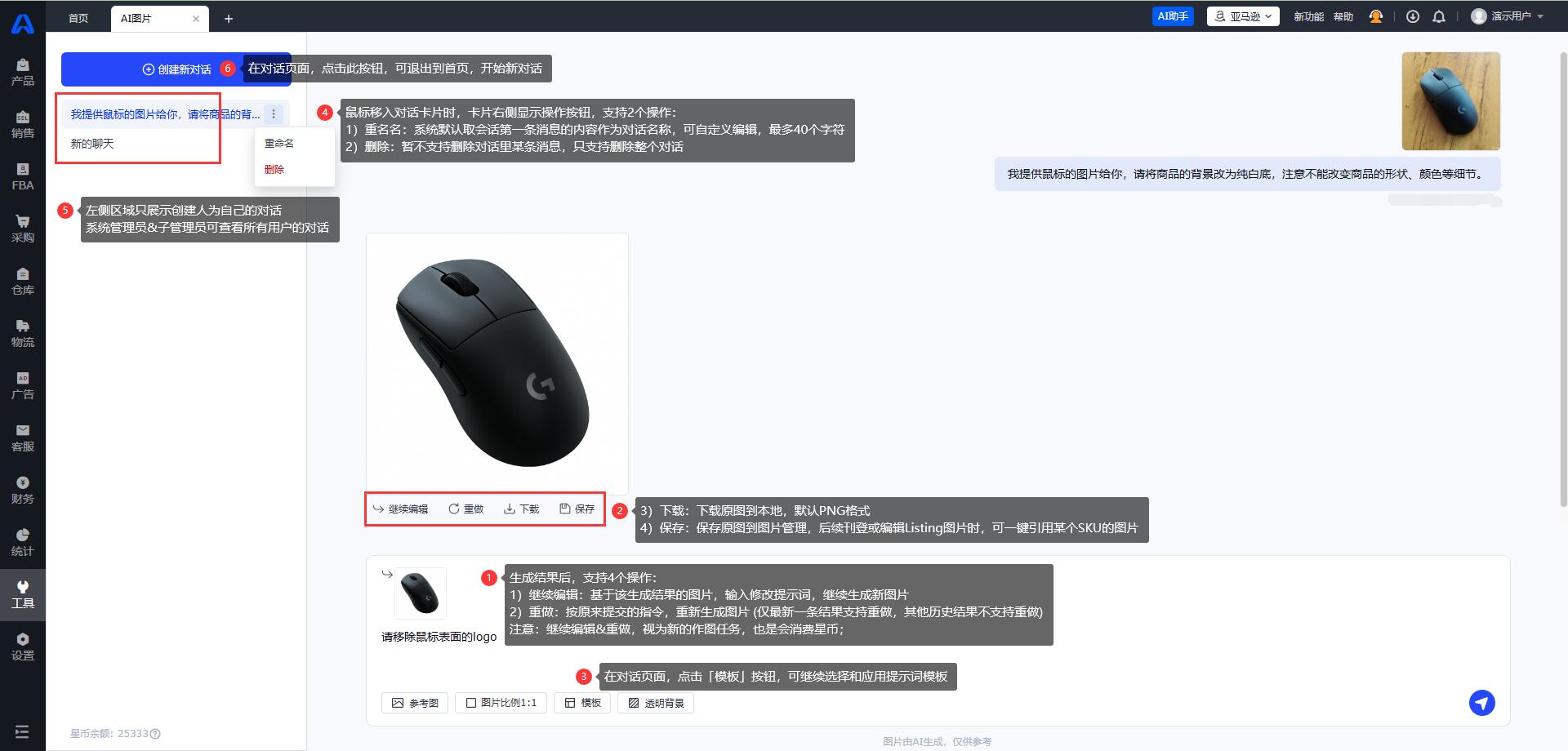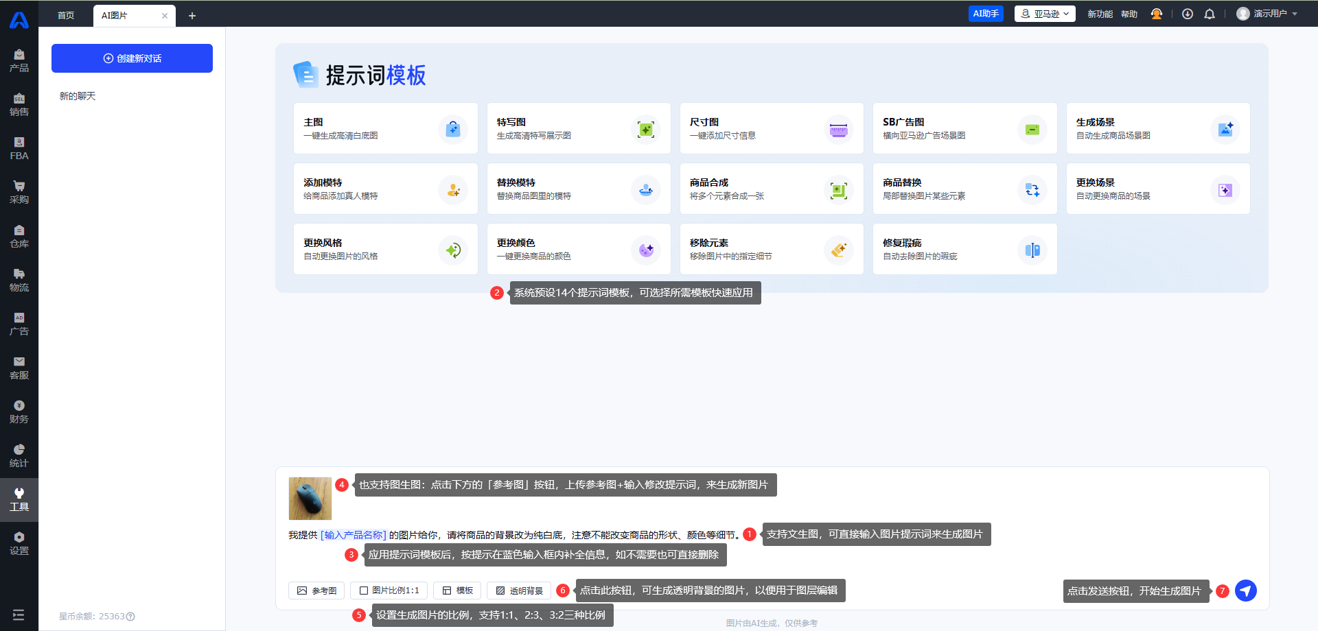 功能入口:工具模块 > AI生图,在全局的AI助手里也放置快速跳转按钮