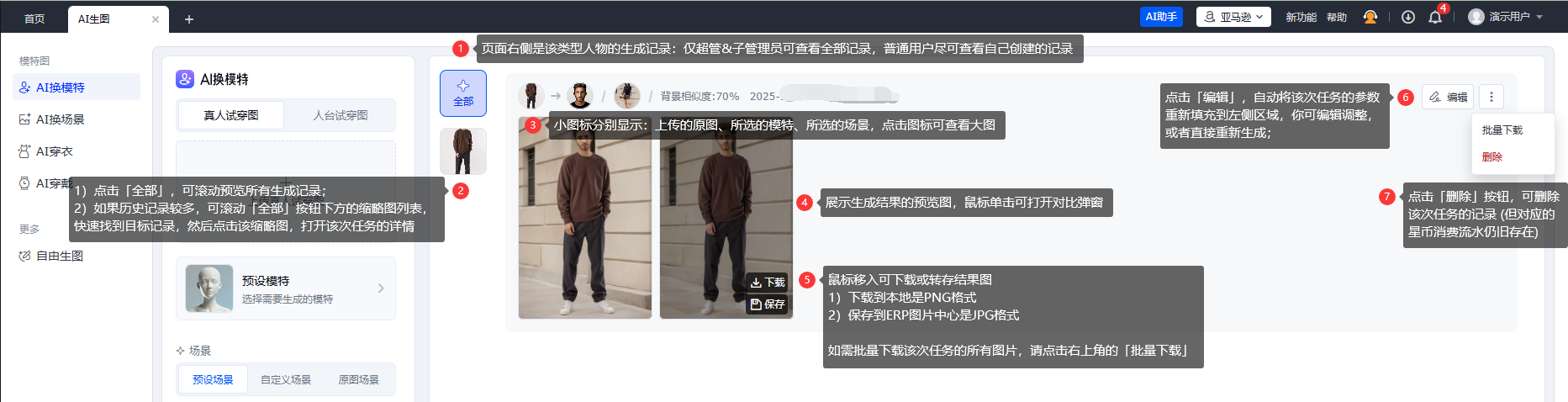 生图结果的页面&交互,参考【AI换模特】的相关说明;
