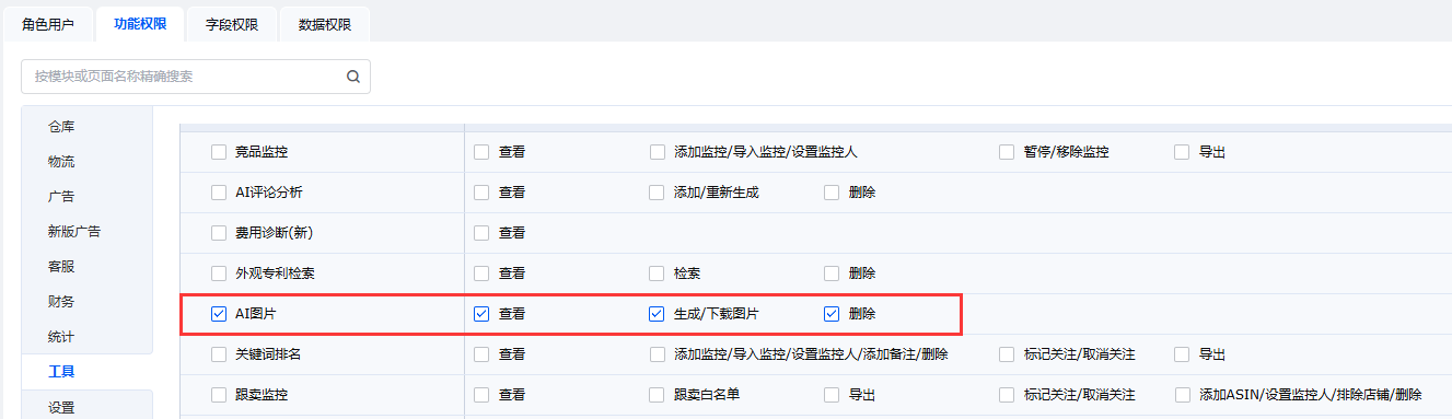功能权限:设置模块 > 角色管理 > 工具 > AI图片