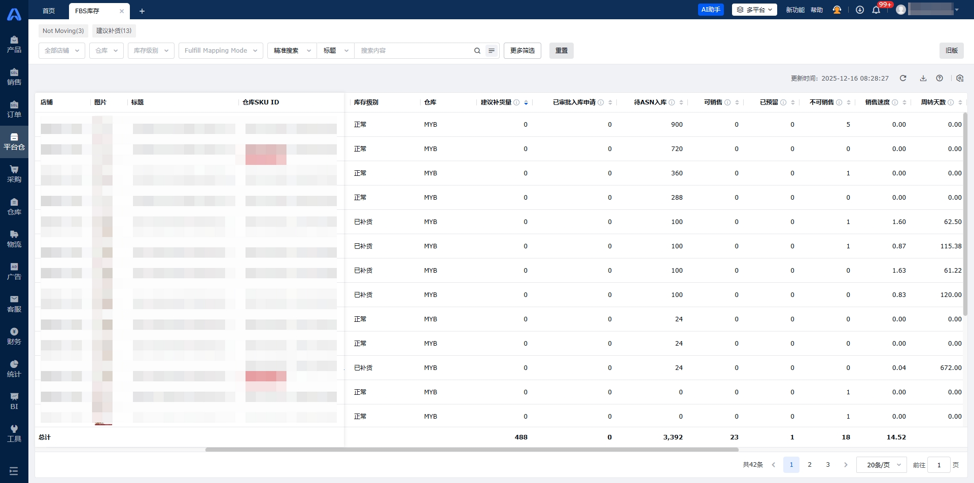 FBS库存展示已授权Shopee店铺的平台仓库存数据。