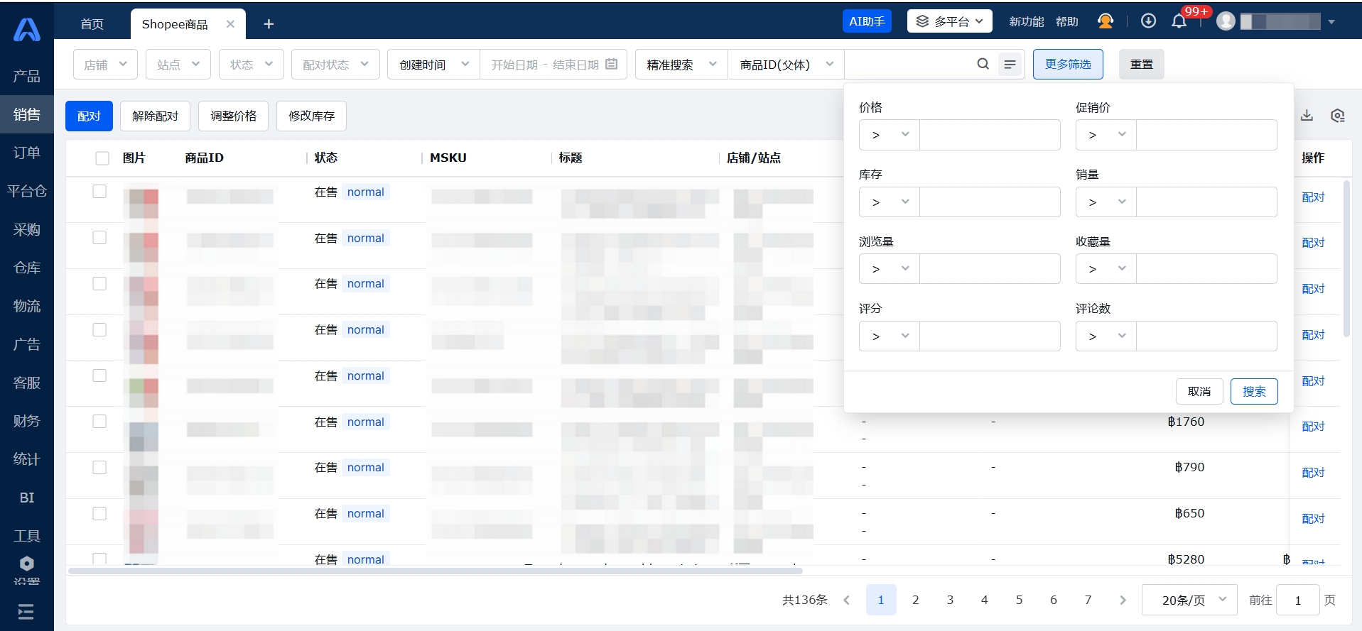 授权后,自动同步Shopee店铺在线商品(Listing)到领星ERP。