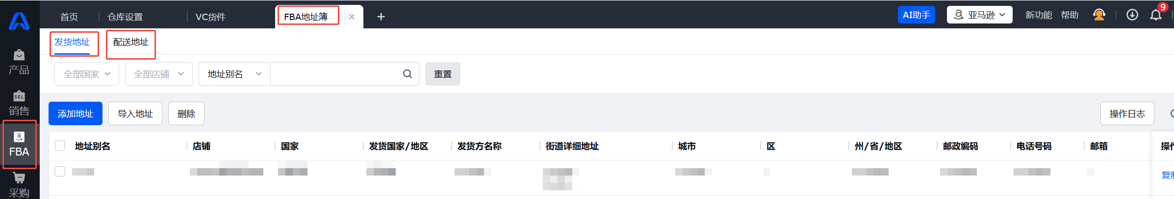 1.维护FBA地址簿