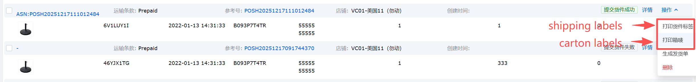 根据亚马逊规则,通过接口提交的ASN,只能通过接口进行编辑和打印标签,即只能在系统内操作。