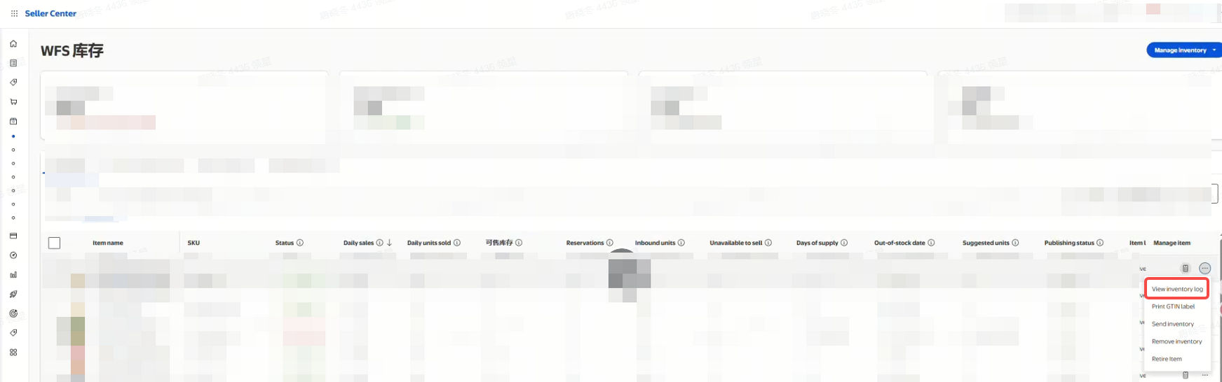 展示WFS仓(Walmart平台仓)的出入库流水,以及按先进先出计价的成本。