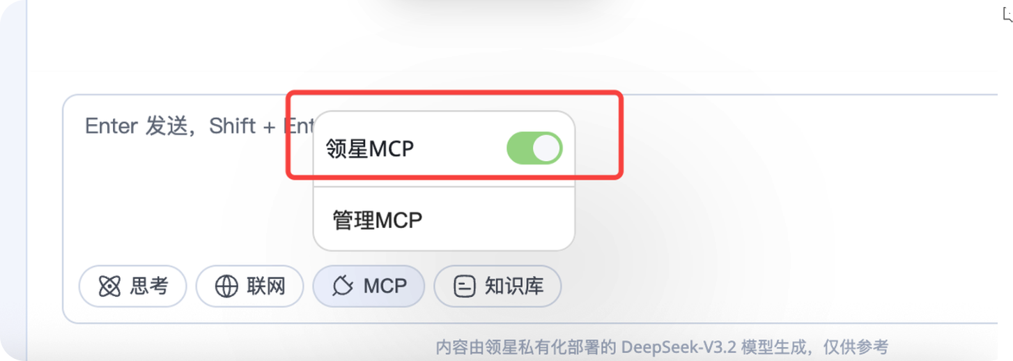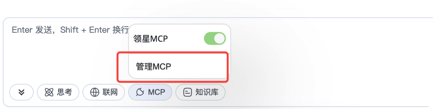 领星MCP可与任何支持自定义工具的AI平台集成,通用配置步骤: