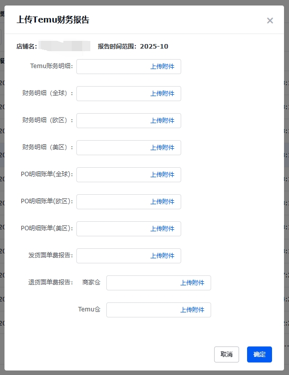 点击报告管理,选择temu全托管,在报告时间范围选择报告账务时间对应日期,点击右侧上传