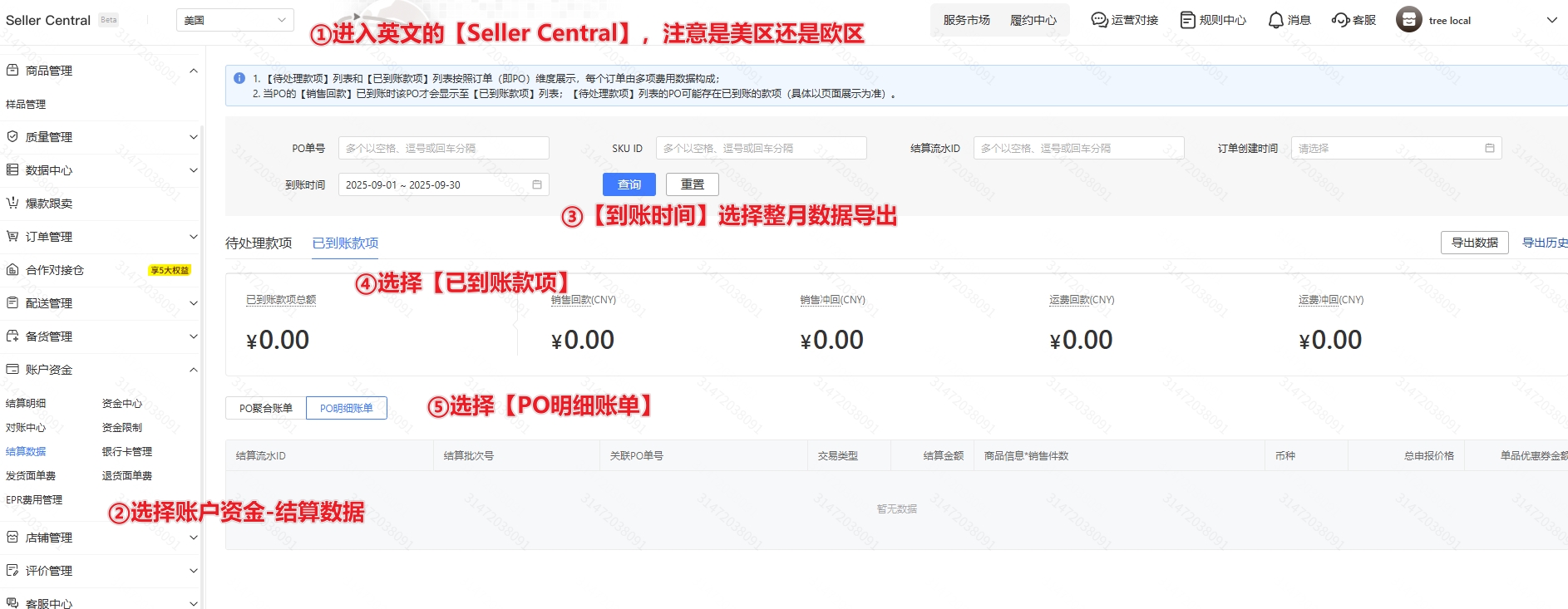 您需要在店铺后台的我的收入-已完成结算收入下载报告。注意要下载新版本数据,且导出数据需要勾选含订单及详细商品导出。