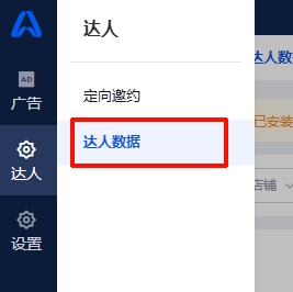 2.功能入口:确保当前在TikTok广告页面后,在左侧导航栏找到达人>达人数据