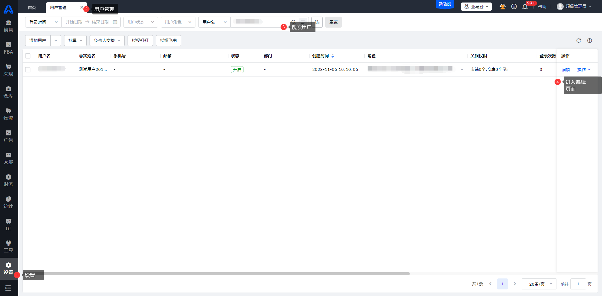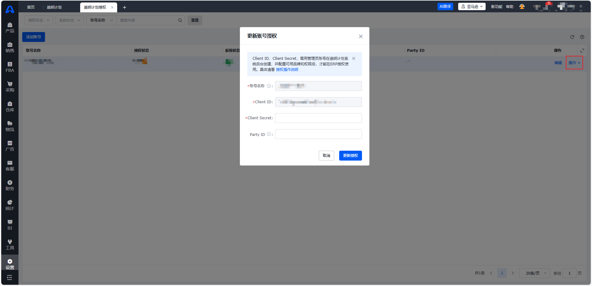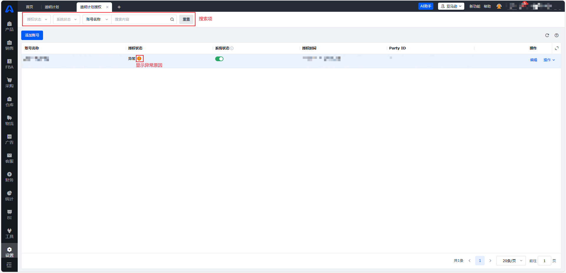 进入【设置-角色管理-选中对应角色-功能权限-(亚马逊)设置-透明计划授权】,勾选【透明计划授权】。