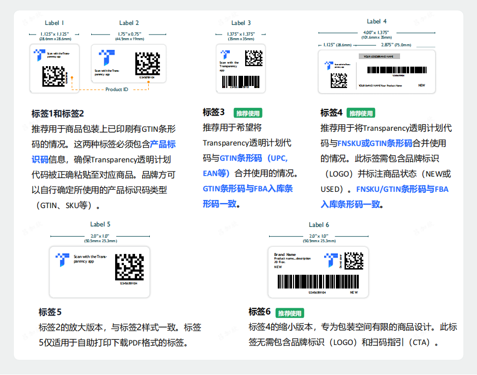 Transparency 透明计划标签设计&贴标指南:点击【设置-打印模板-透明计划标签-标签设计指南】,可预览和下载指南。请您按照规范设计标签和贴标。