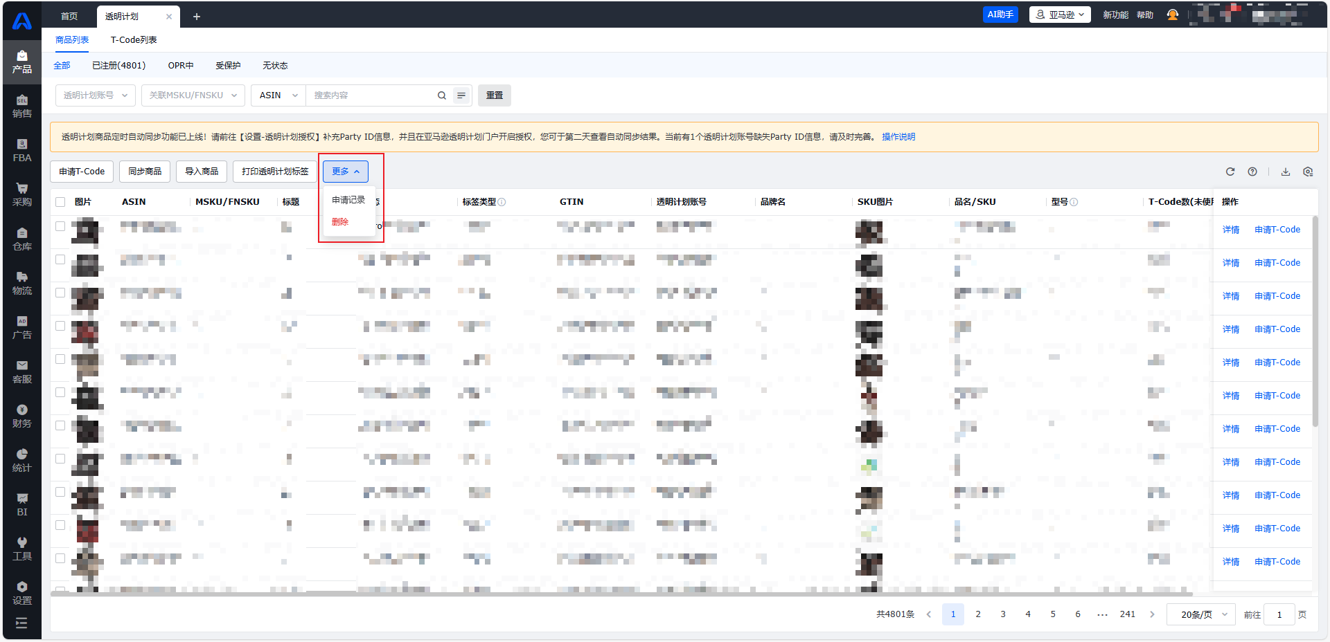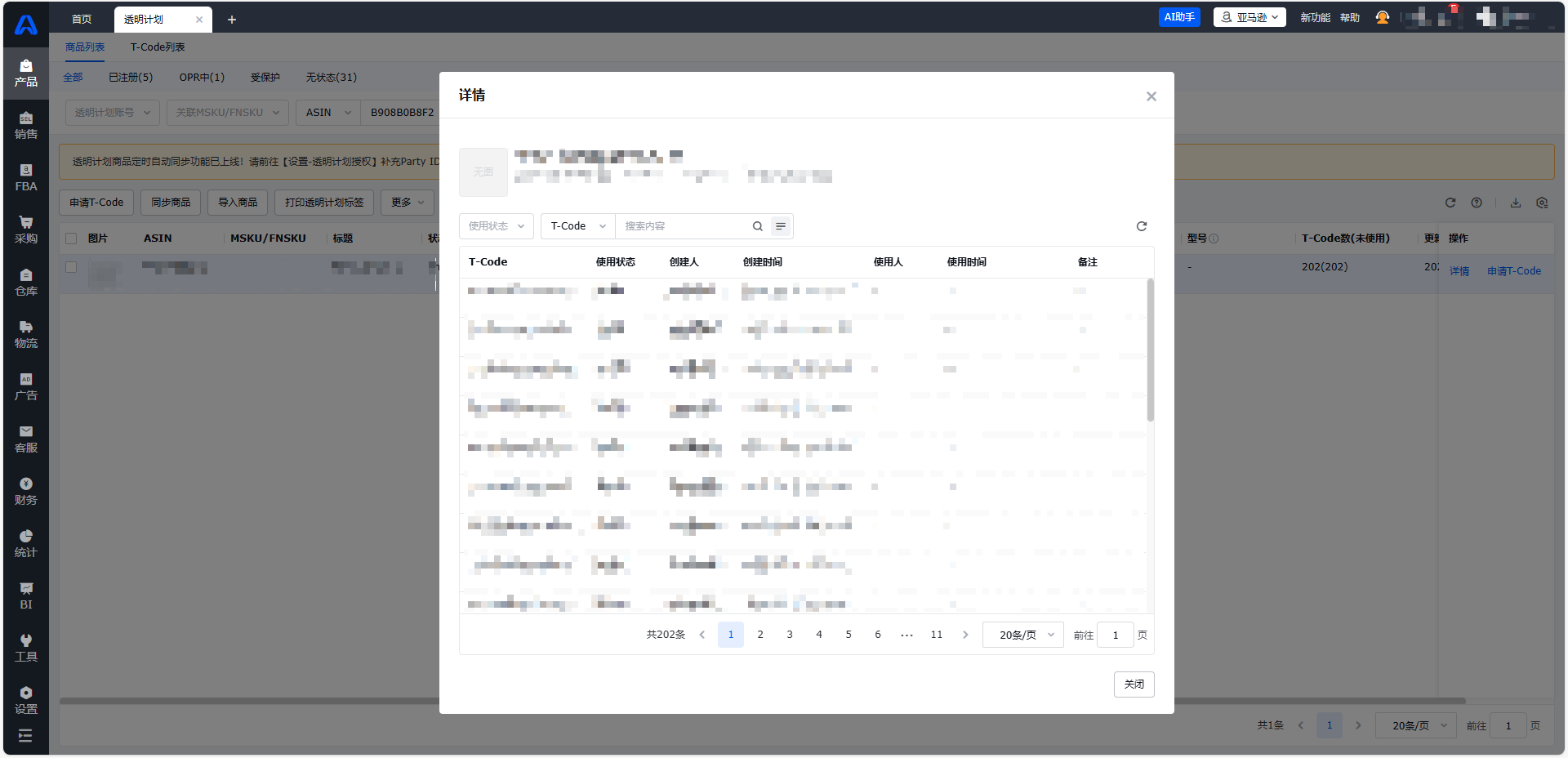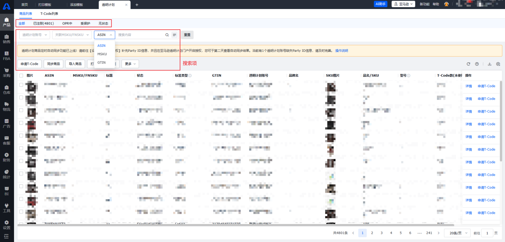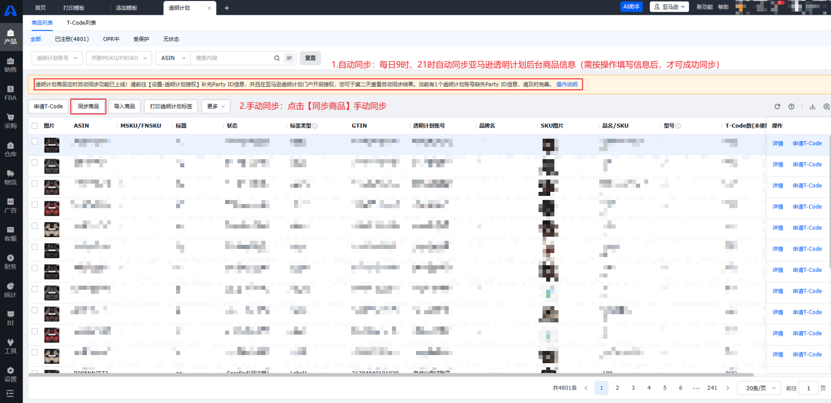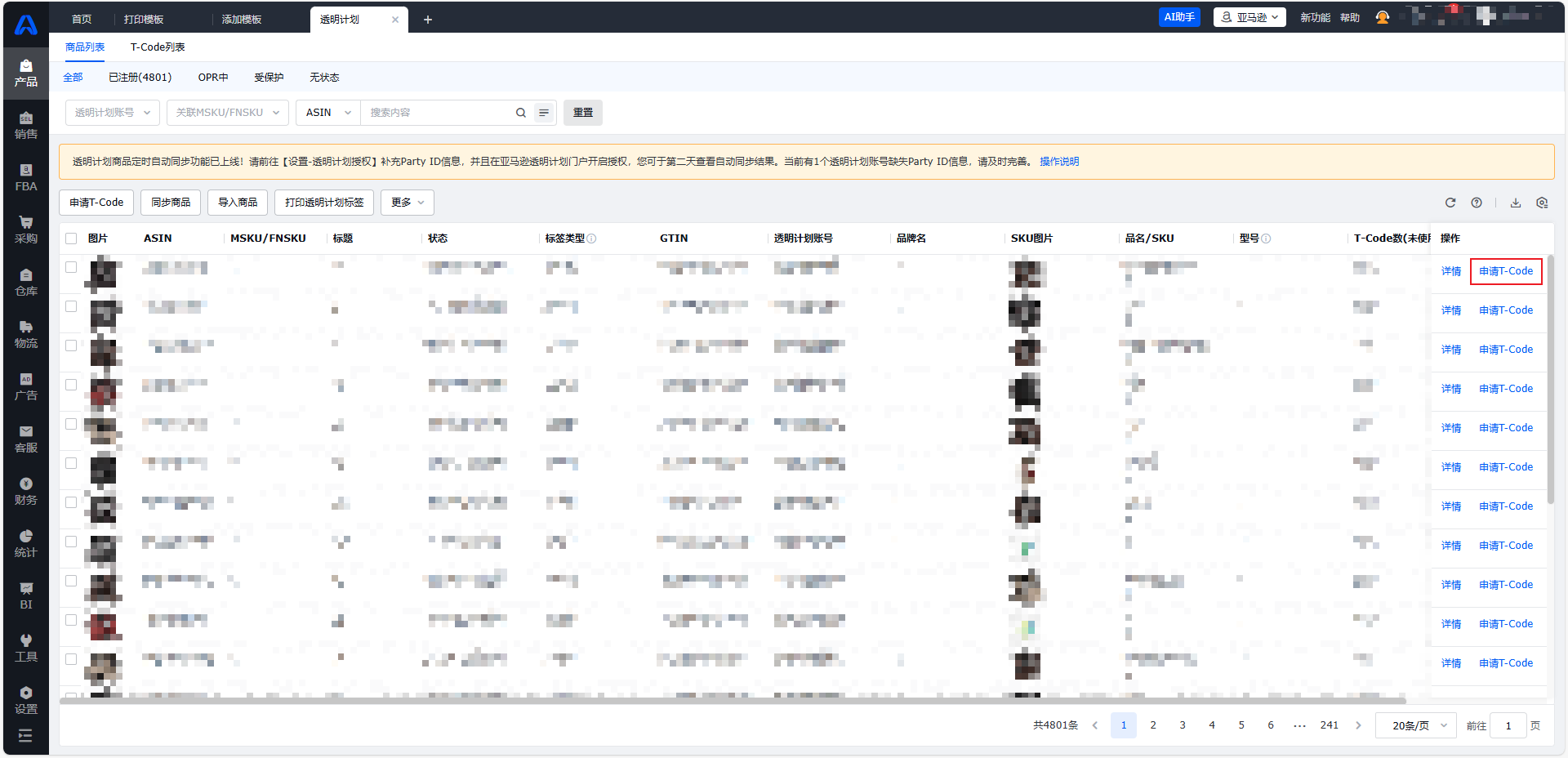加入透明计划的ASIN、MSKU,【销售-listing】页面需已存在此ASIN、MSKU数据