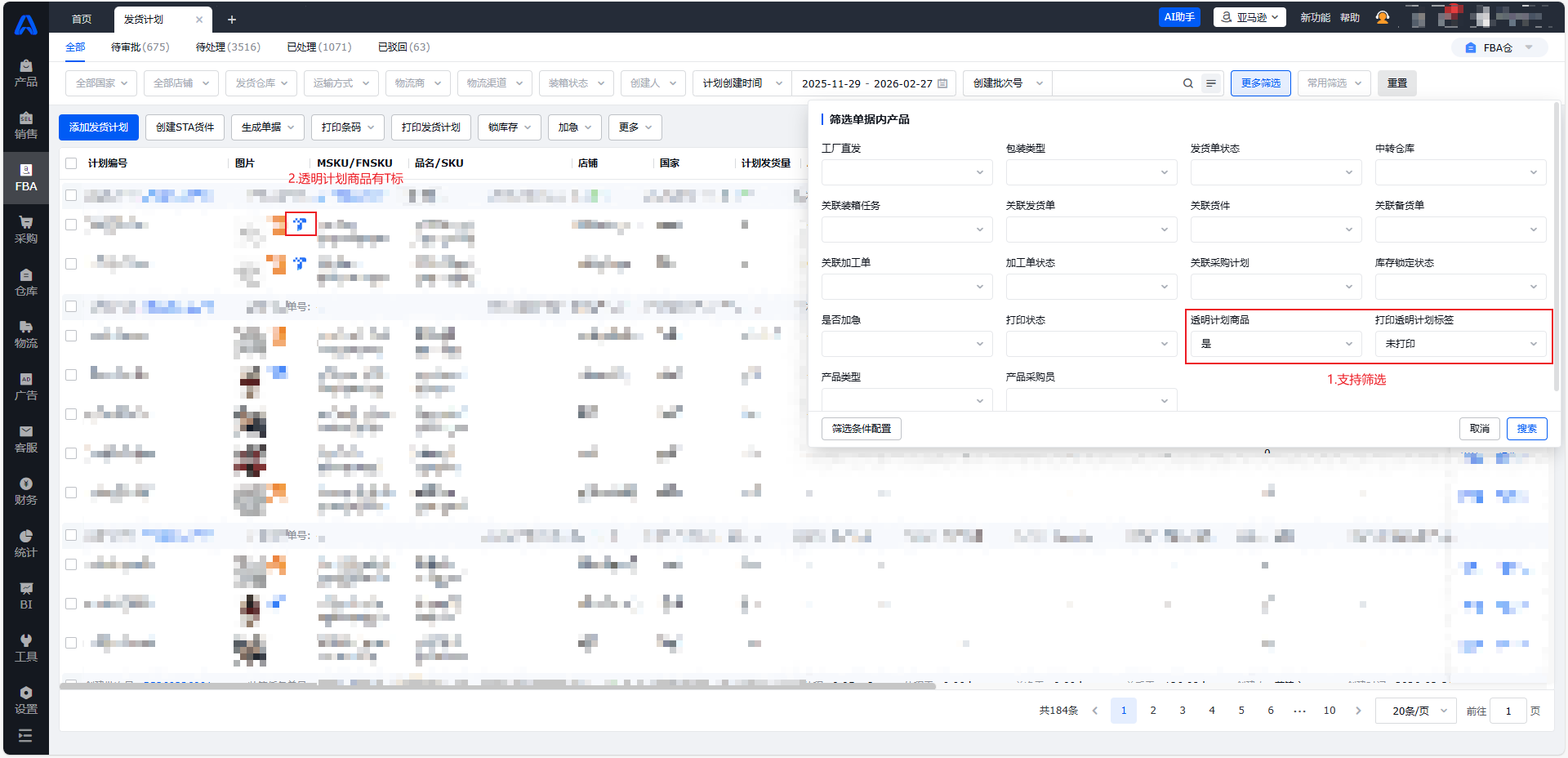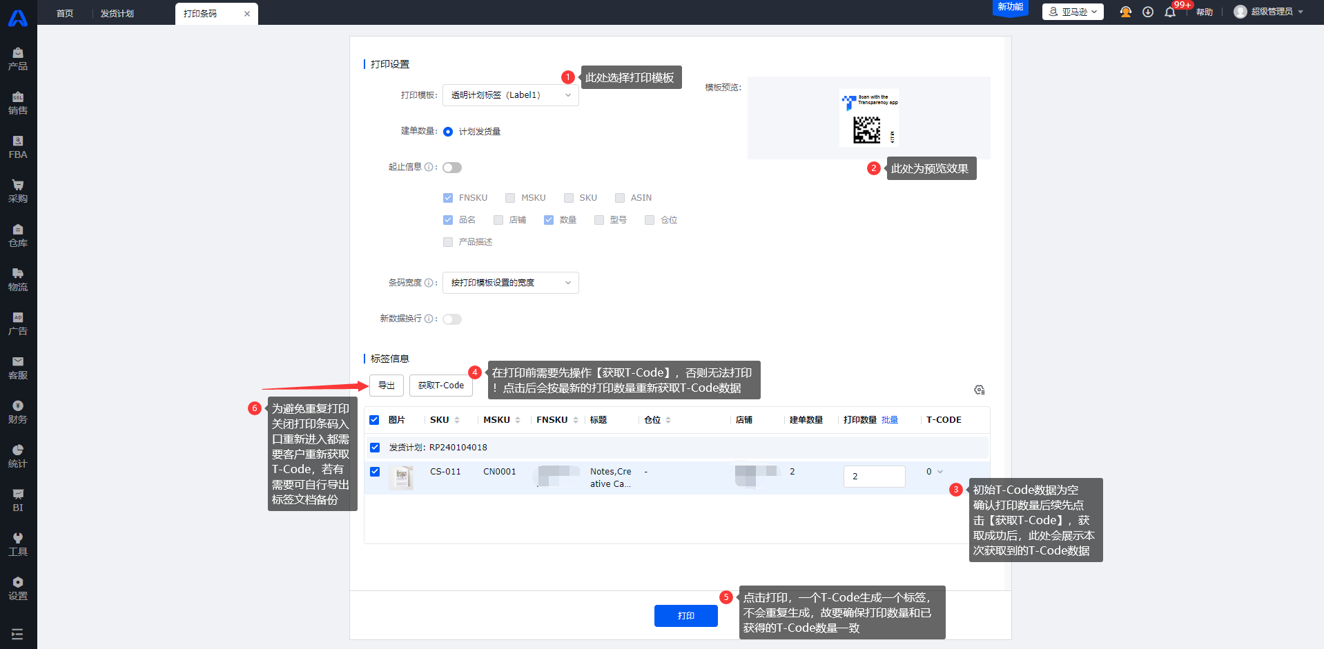 A1:可以在透明计划管理-商品列表或T-Code列表进行打印,目前系统FBM业务模块暂时没有接入透明计划功能