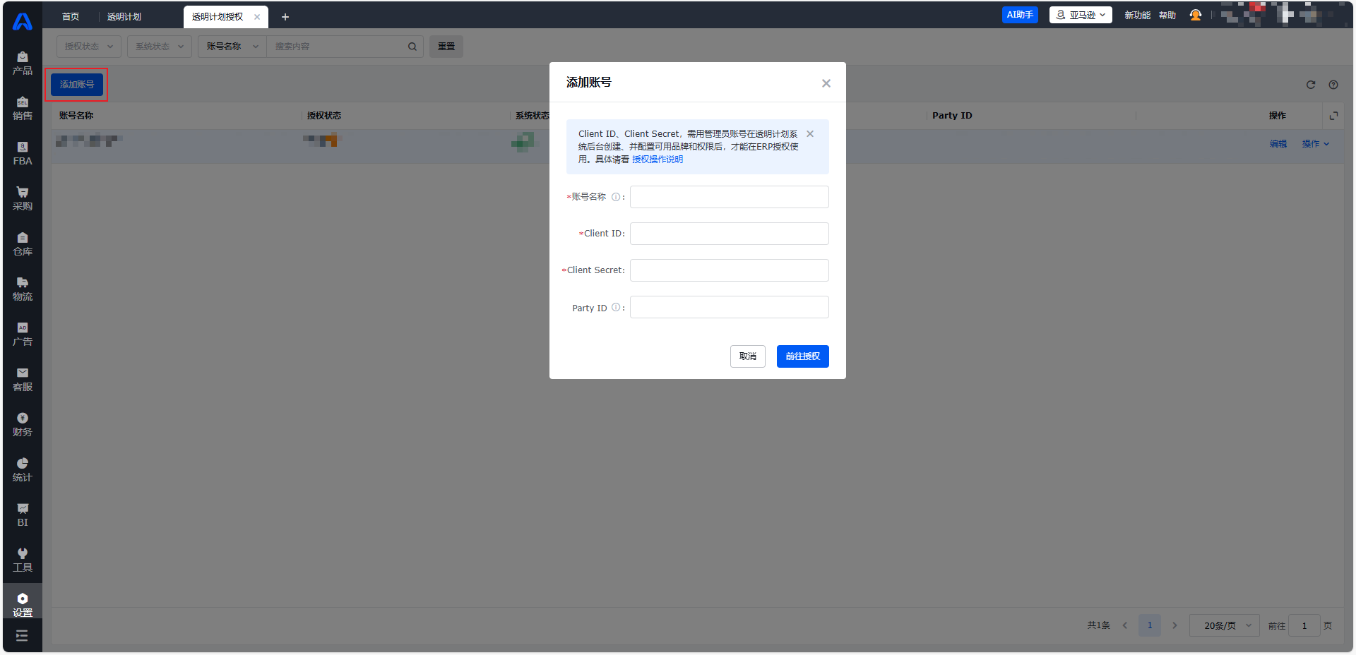 需要“开放授权”与“绑定Party ID”都完成,才可同步字段:ASIN、标题、状态、GTIN、品牌名。