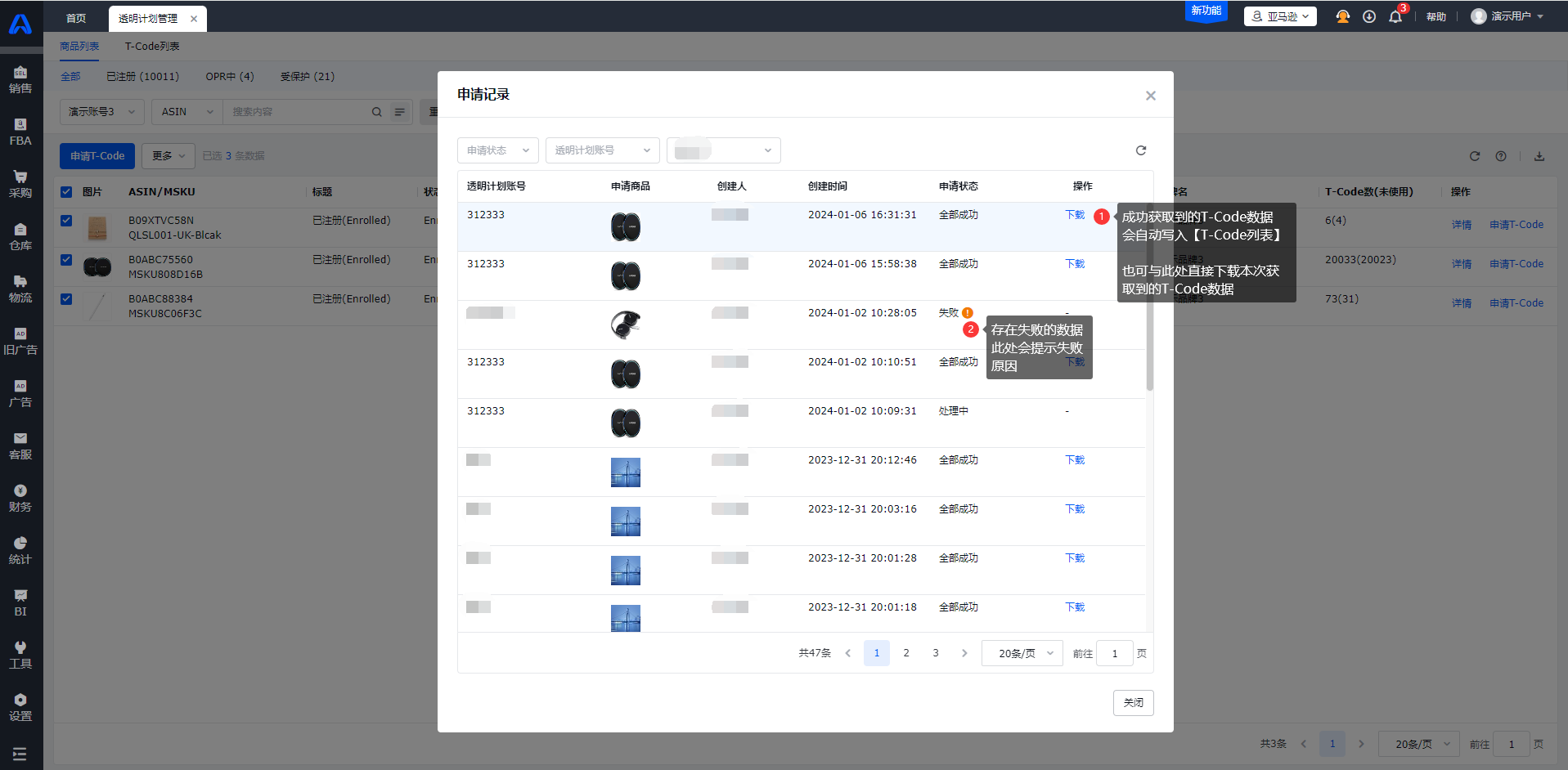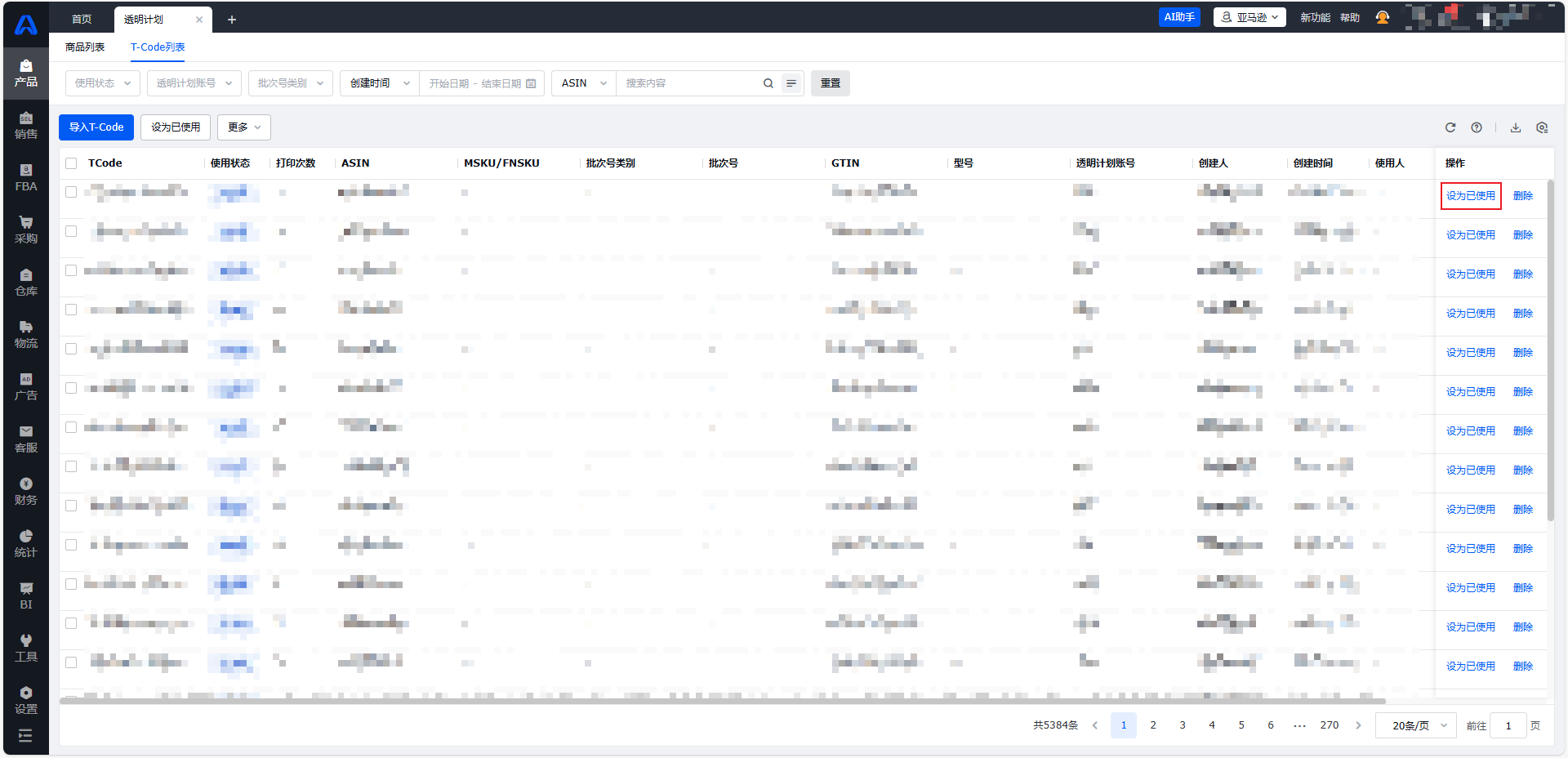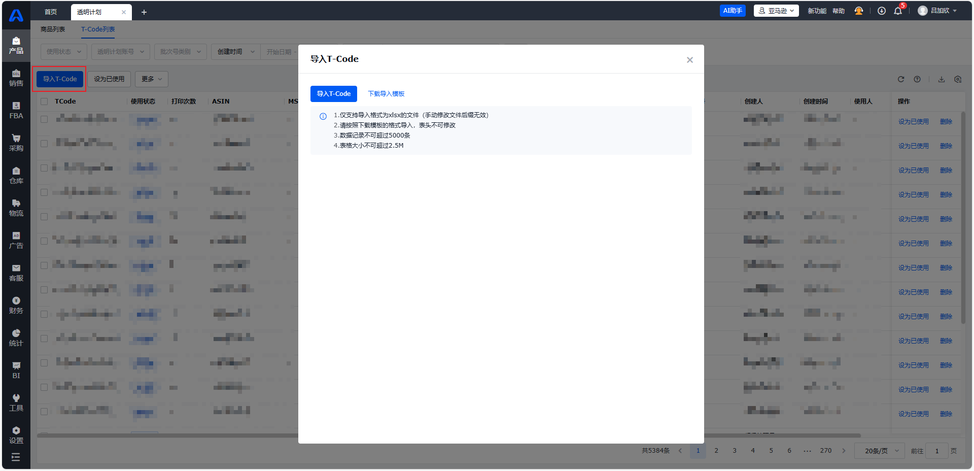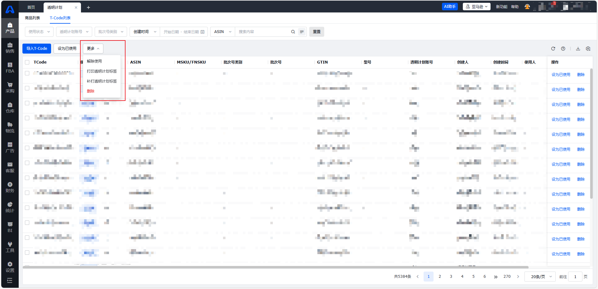 A5:T-code申请成功后由亚马逊透明计划完成收费,在erp中删除后会丢失这条T-code在系统的记录数据,不代表T-code从亚马逊退费