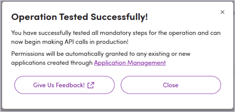 ⑤当收到第一次成功的沙盒库存同步请求之后,会跳出如下图所示弹窗显示测试已经成功,权限已经被授权到生产环境。