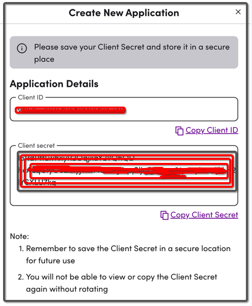 ⑥当沙盒APP创建完后请务必记录Client ID 和 Client Secret(如下图所示) — 会被用来获取token来完成API对接认证